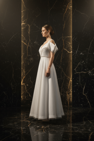 Elegant, ethereal, and quietly powerful, this ensemble is crafted for the woman who carries light with her.