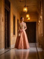 Each reflective detail glimmers under warm amber light, echoing the regal charm of ancestral havelis and carved corridors.
