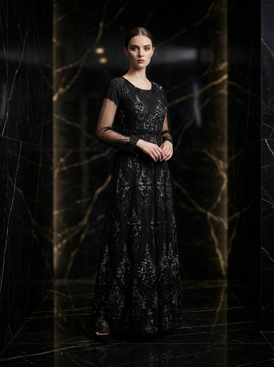 Midnight elegance, stitched in timeless allure.