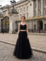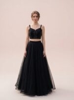 A statement of midnight elegance—where fluid grace meets meticulous couture.